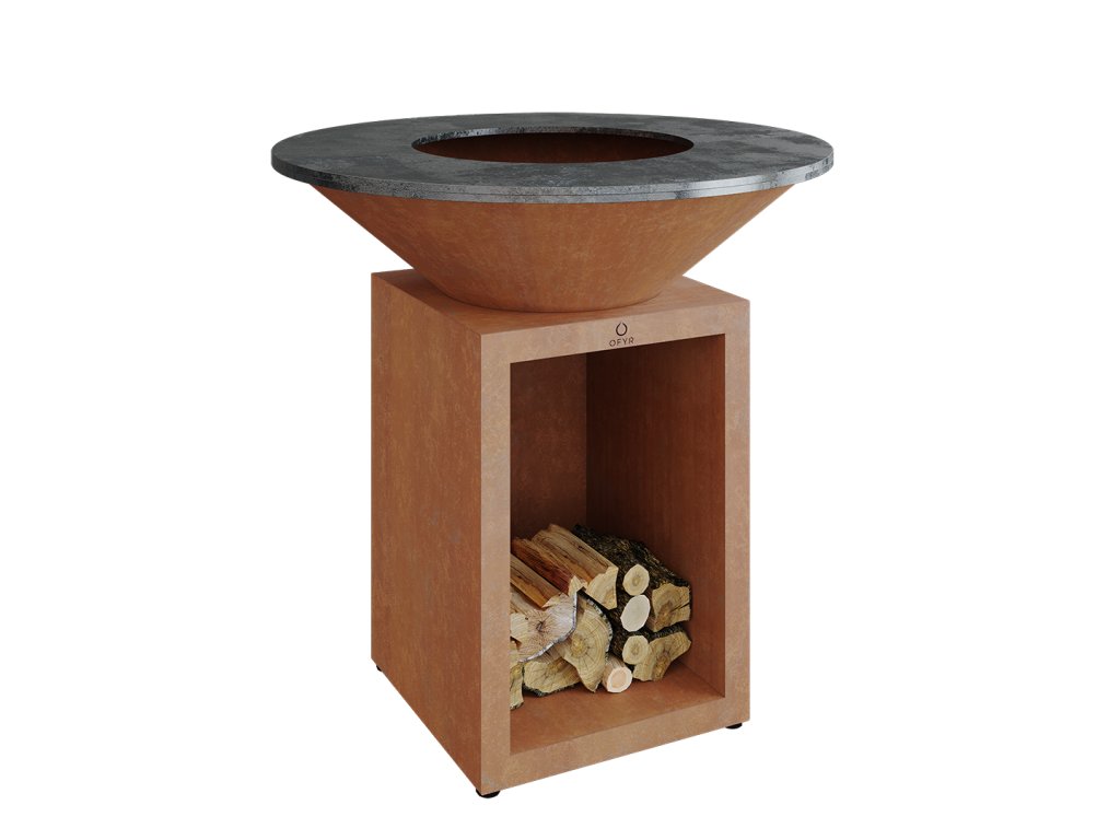 Nový model nejprodávanějšího OFYRu se zásobníkem na dřevo a plotnou velikosti 100 cm. Nový model s označením "+" má pasivní přisávání vzduchu z podstavce a litinovou vnitřní plotnu "Airflow Plate" díky čemuž spaluje dřevo efektivněji přímo pod plotnou a tím spotřebuje méně dřeva a dosáhne rychleji optimální teploty.