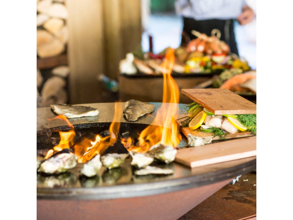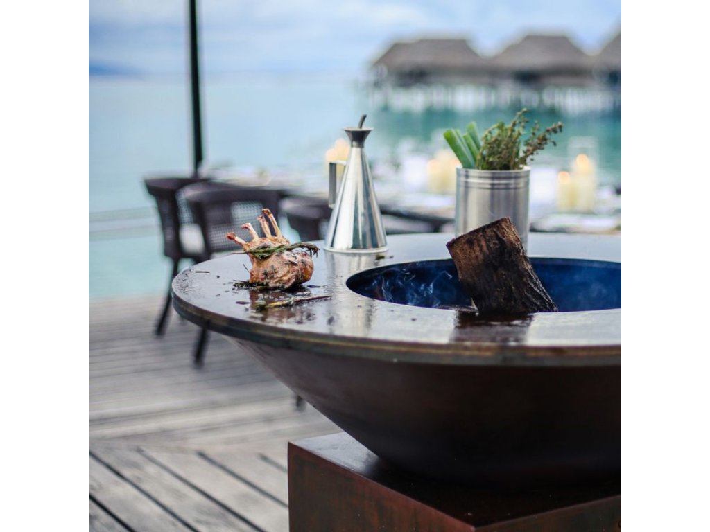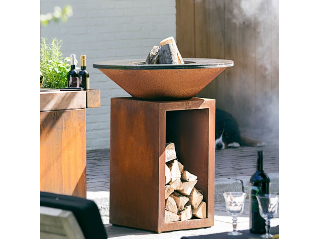 Klasický kortenový OFYR se zásobníkem na dřevo, velikost plotny 85 cm. Tento nový model s označením "+" má pasivní přisávání vzduchu z podstavce a litinovou vnitřní plotnu "Airflow Plate" díky čemuž spaluje dřevo efektivněji přímo pod plotnou a tím spotřebuje méně dřeva a dosáhne rychleji optimální teploty.