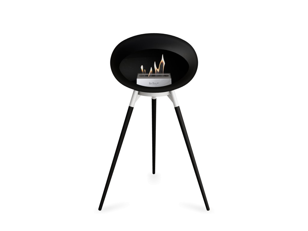 Přenosný biokrb LeFeu DOME GROUND HIGH Black. Kopule: Černá, nožičky: Černé, trojnožka: Bílá, kartuš: Nerez