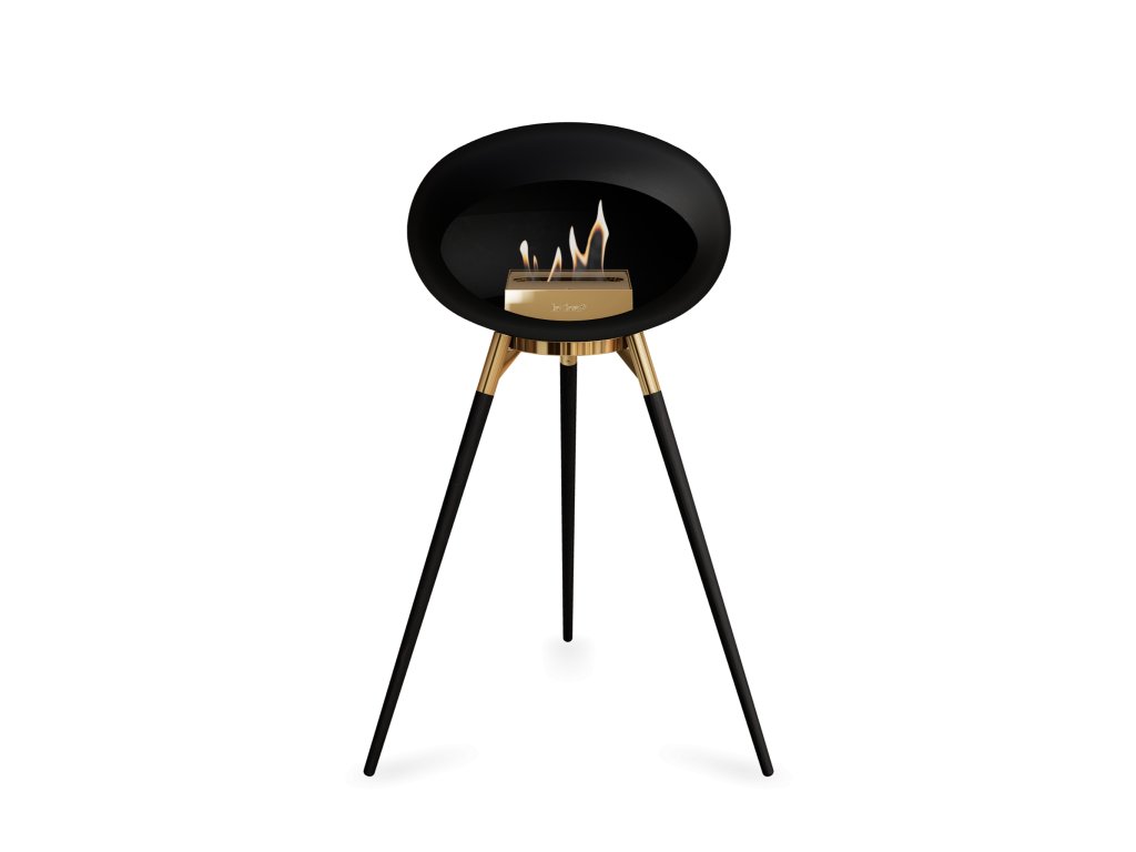 Přenosný biokrb LeFeu DOME GROUND HIGH Black. Kopule: Černá, nožičky: Černé, trojnožka: Rose Gold, kartuš: Rose Gold
