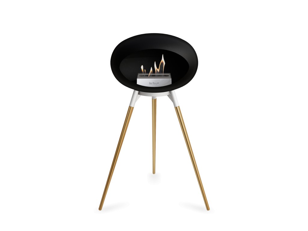Přenosný biokrb LeFeu DOME GROUND HIGH Black. Kopule: Černá, nožičky: Rose Gold, trojnožka: Bílá, kartuš: Nerez
