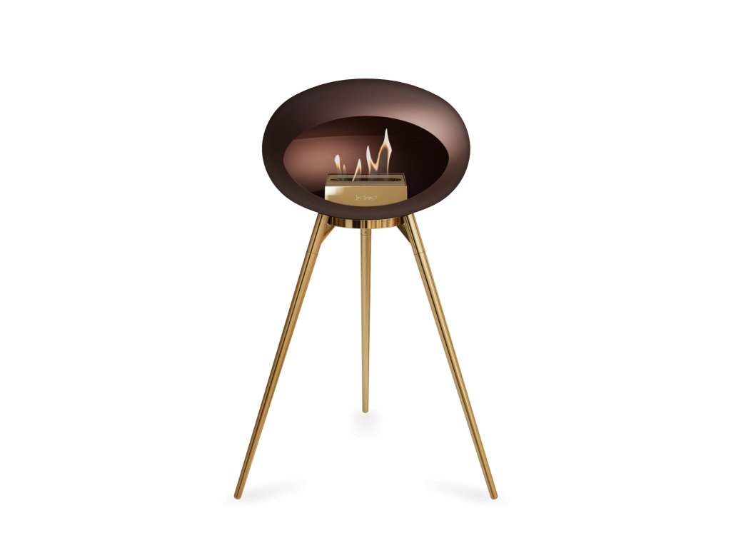 Přenosný biokrb LeFeu DOME GROUND HIGH Mocca. Kopule: Mocca, nožičky: Rose Gold, trojnožka: Rose Gold, kartuš: Rose Gold