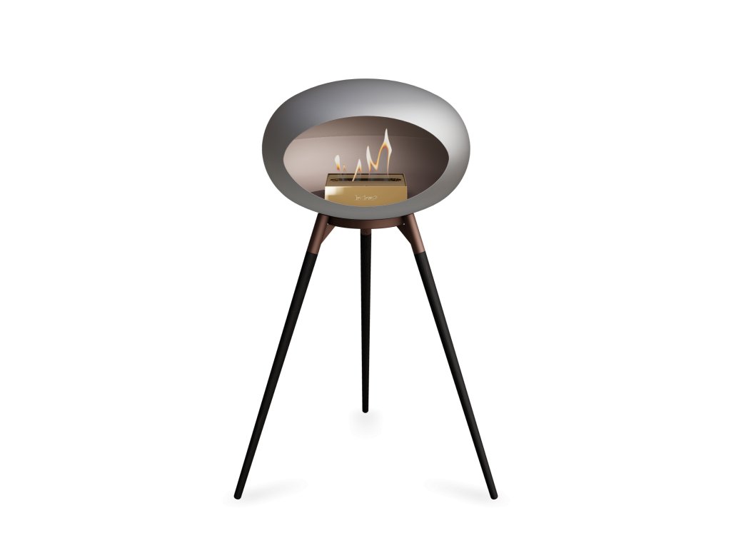 Přenosný biokrb LeFeu DOME GROUND HIGH Nickel. Kopule: Nickel, nožičky: Černé, trojnožka: Mocca, kartuš: Rose Gold