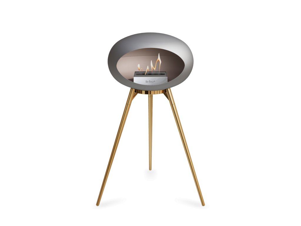 Přenosný biokrb LeFeu DOME GROUND HIGH Nickel. Kopule: Nickel, nožičky: Rose Gold, trojnožka: Rose Gold, kartuš: Nerez