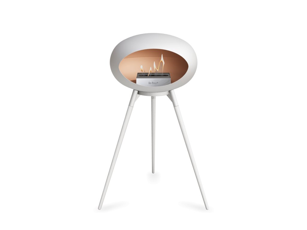 Přenosný biokrb LeFeu DOME GROUND HIGH White. Kopule: Bílá, nožičky: Bílé, trojnožka: Bílá, kartuš: Nerez
