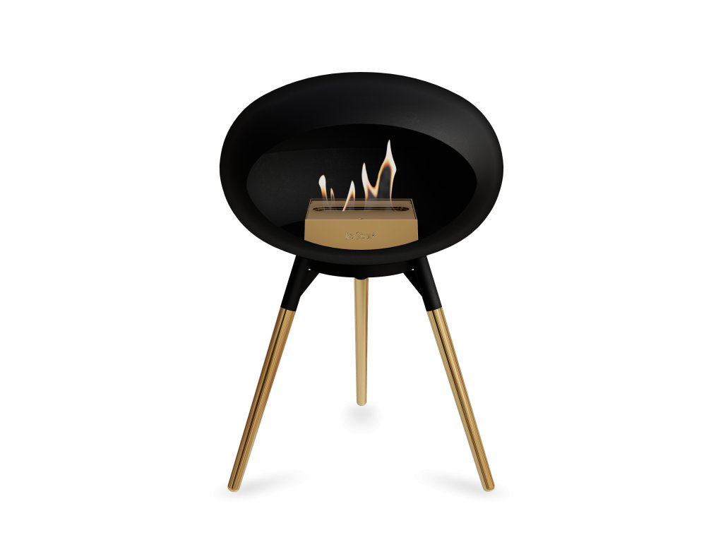 Přenosný biokrb LeFeu DOME GROUND LOW Black. Kopule: Černá, nožičky: Rose Gold Legs, trojnožka: Black Bowl, kartuš: Rose Gold