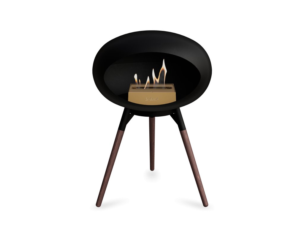Přenosný biokrb LeFeu DOME GROUND LOW Black. Kopule: Černá, nožičky: Smoked Oak Legs, trojnožka: Black Bowl, kartuš: Rose Gold