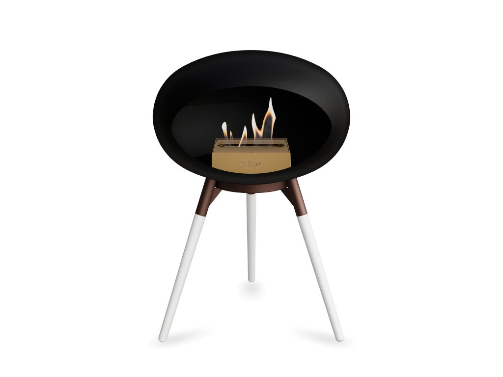 Přenosný biokrb LeFeu DOME GROUND LOW Black. Kopule: Černá, nožičky: White Legs, trojnožka: Mocca Bowl, kartuš: Rose Gold