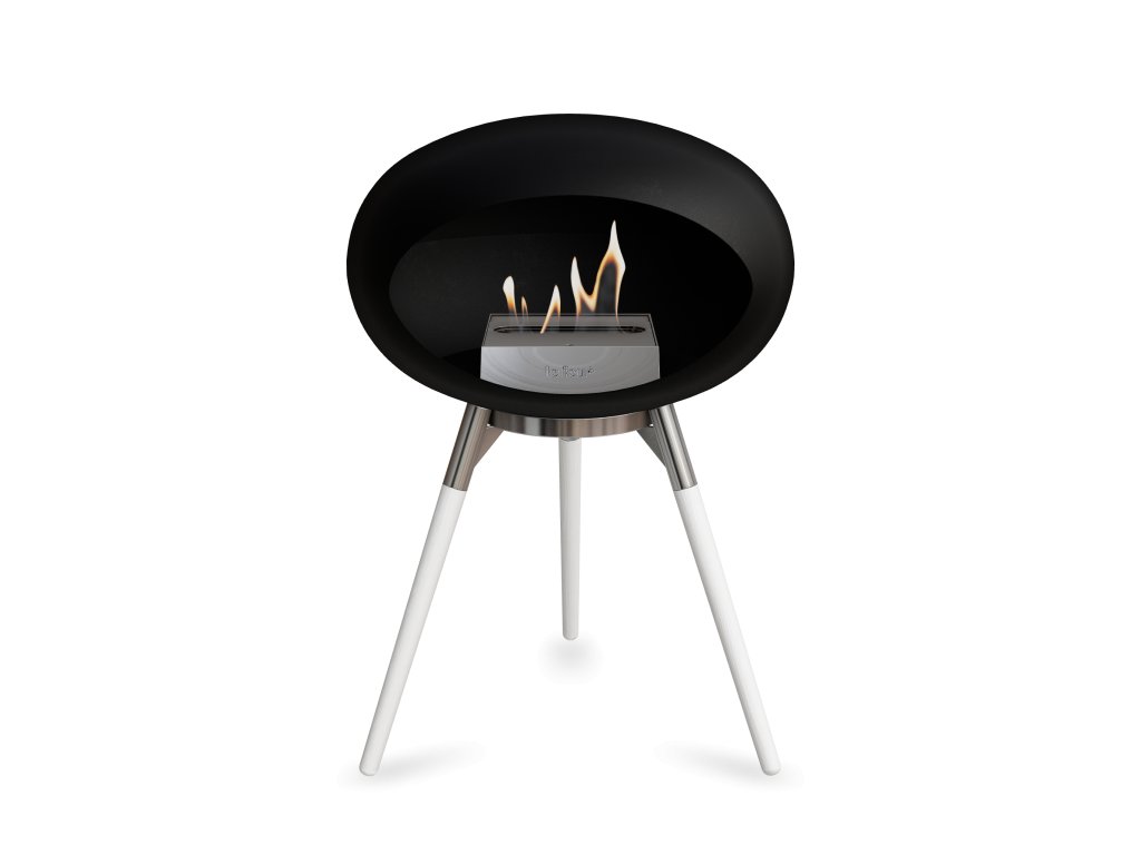 Přenosný biokrb LeFeu DOME GROUND LOW Black. Kopule: Černá, nožičky: White Legs, trojnožka: Polished Steel Bowl, kartuš: Steel