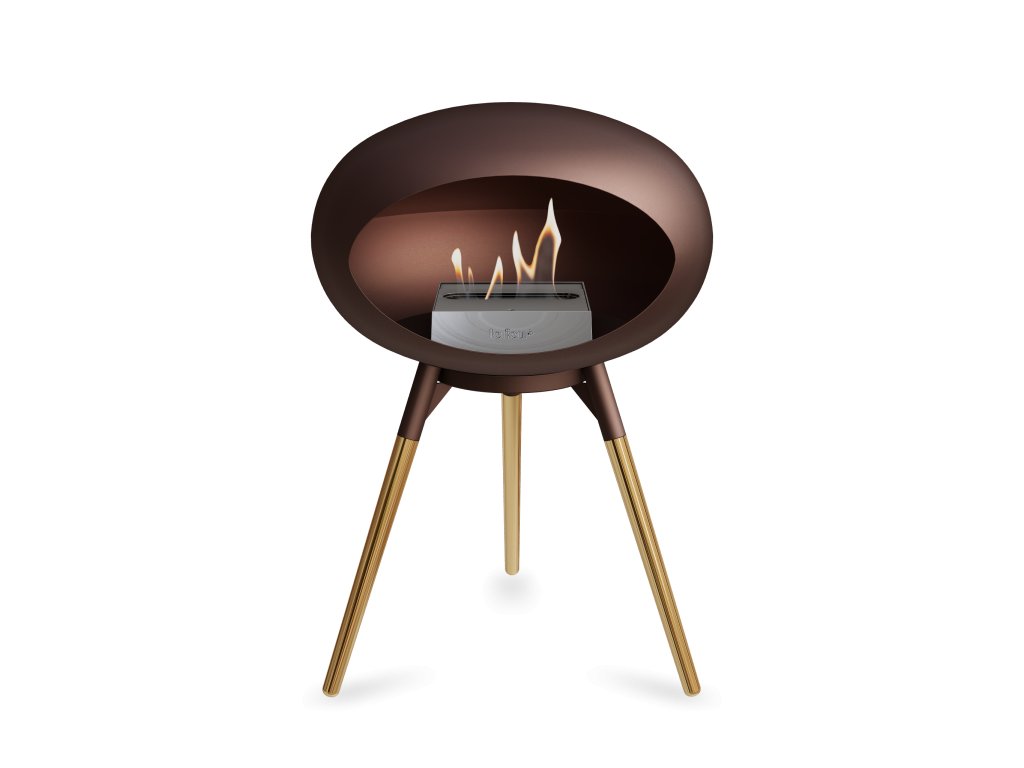 Přenosný biokrb LeFeu DOME GROUND LOW Mocca. Kopule: Mocca, nožičky: Rose Gold Legs, trojnožka: Mocca Bowl, kartuš: Steel