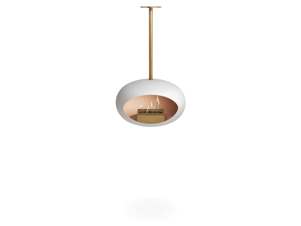 Závěsný biokrb LeFeu DOME SKY White. Kopule: Bílá, závěs: Rose Gold 100 cm, kartuš: Nerez